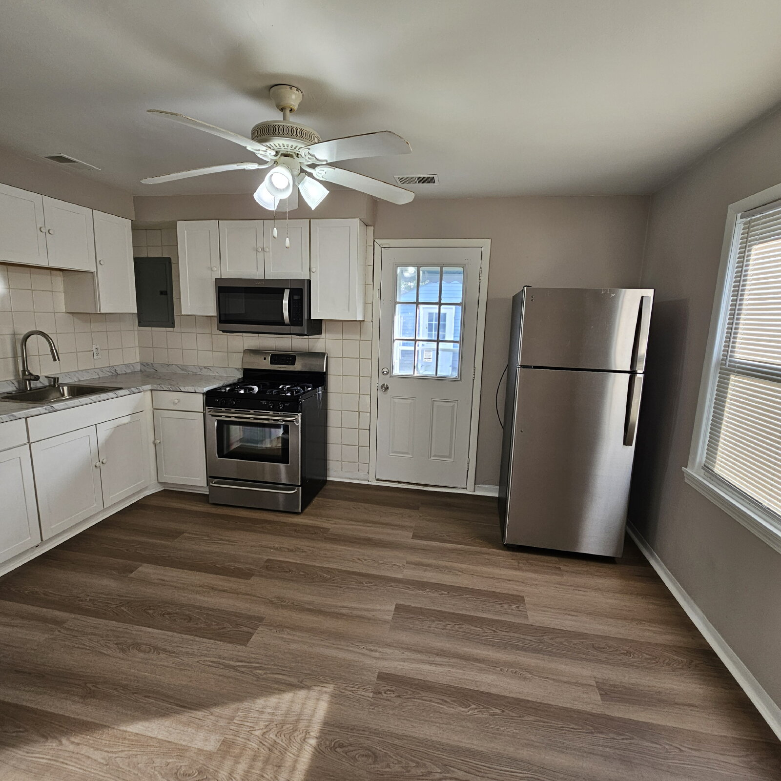 3 Bedroom Bungalow w/ Updated Kitchen and Stainless-Steel Appliances. Spacious Living Room w/ Ceiling Fan and Laminate Flooring Throughout. Eat In Kitchen with Plenty of Cabinet Space. Garage