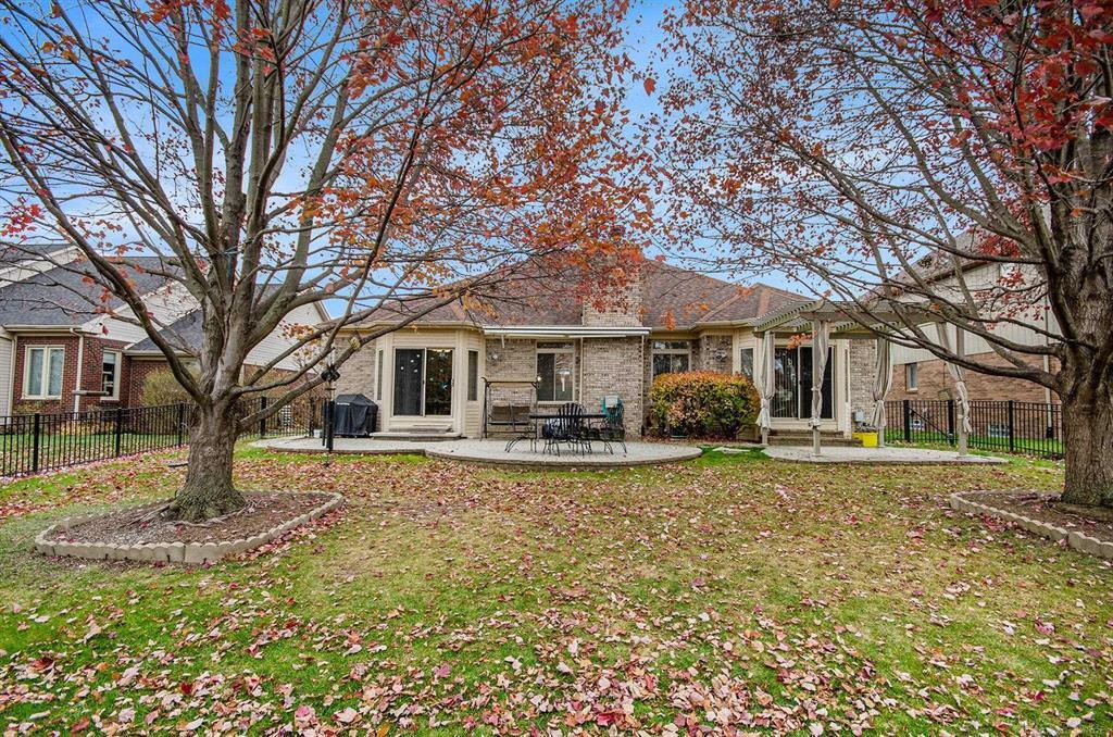 3 bedroom 3.5 bathroom great-room ranch offering an open, airy floor plan and a stunning park-like setting with peaceful pond views. The spacious kitchen features granite countertops, a walk-in pantry, and a large dining area accented by a bright bay window and a door wall that opens to a beautiful brick paver patio—perfect for entertaining or relaxing outdoors.